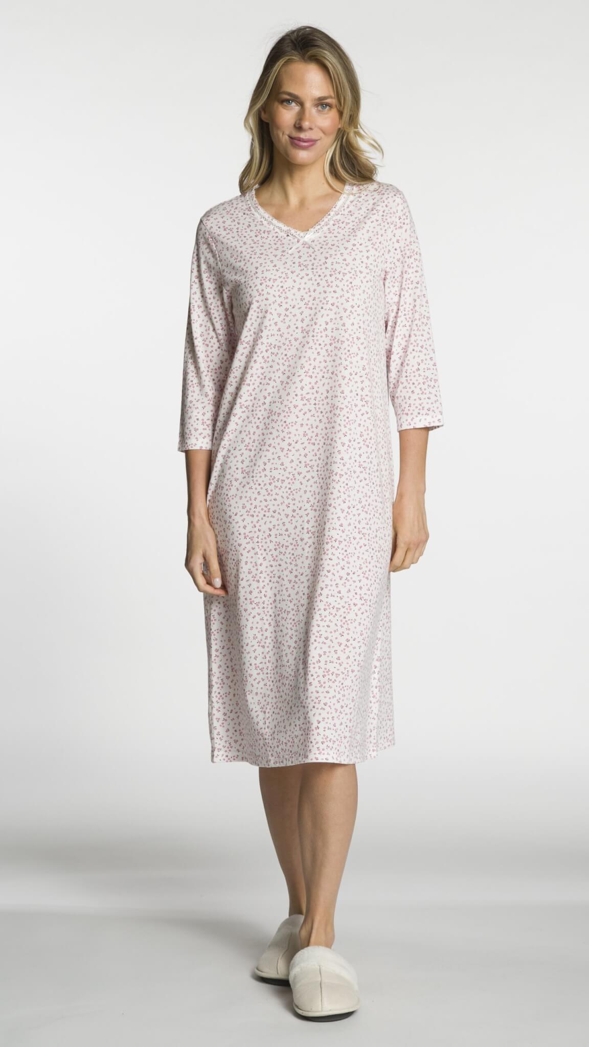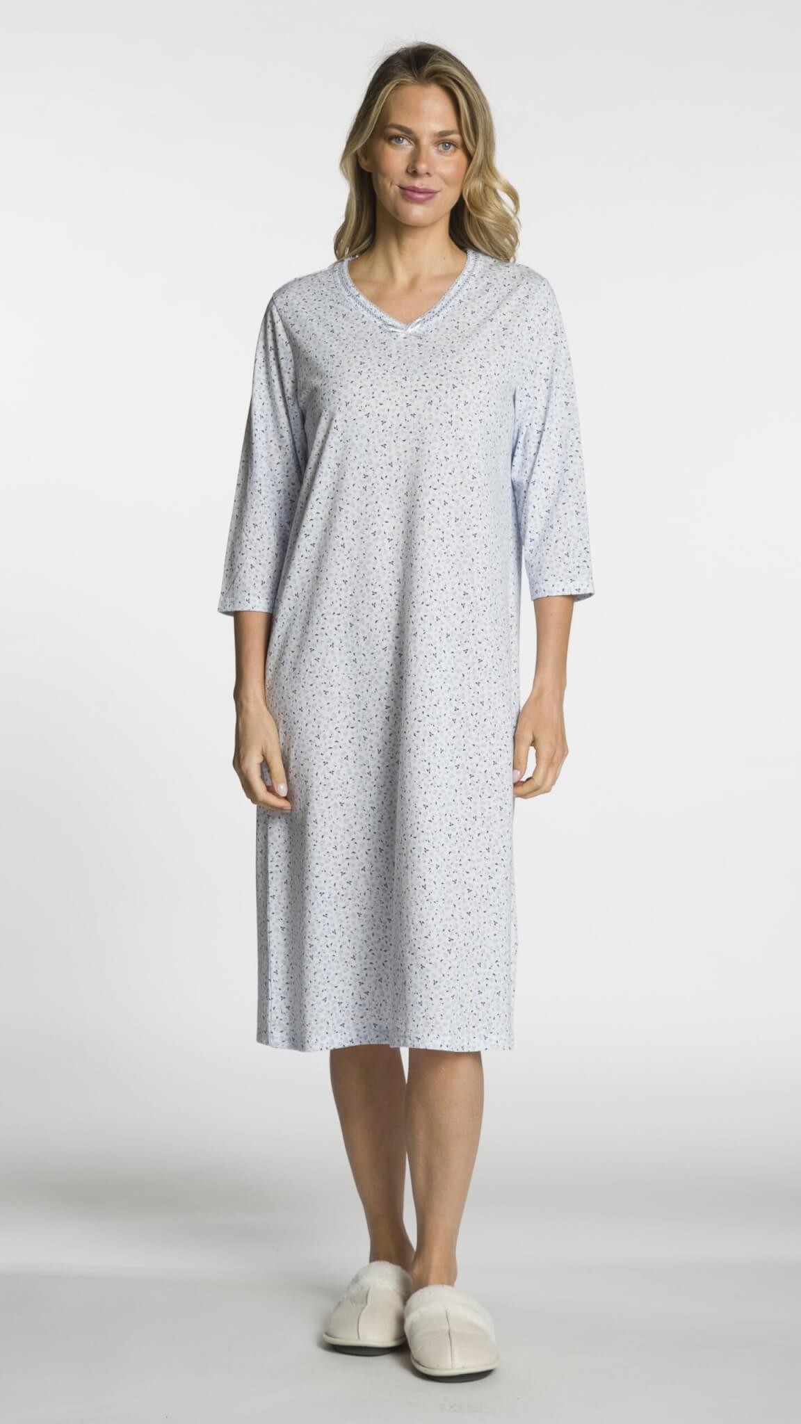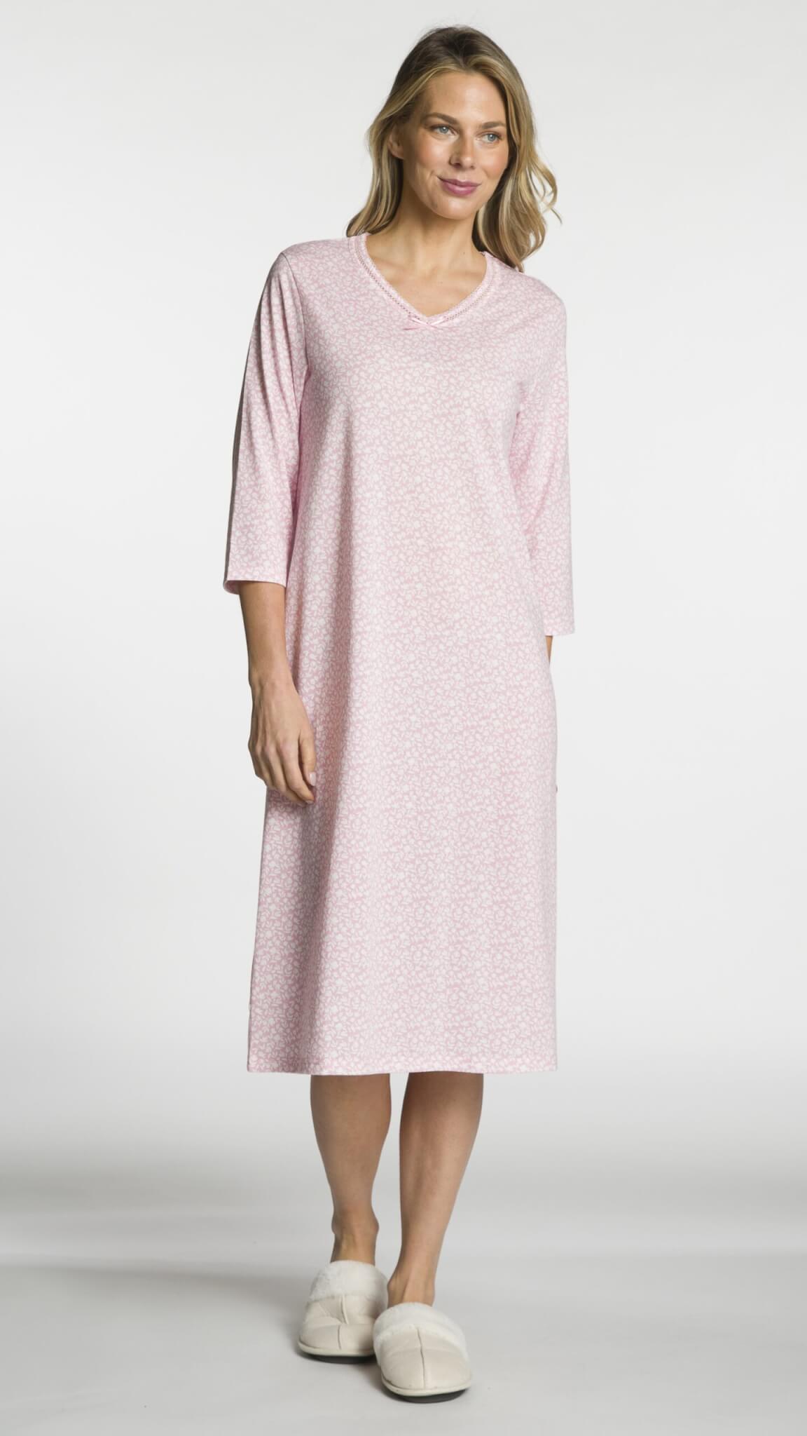 / 3/4 Sleeve Printed V-Neck Nightgown with Bow Detail