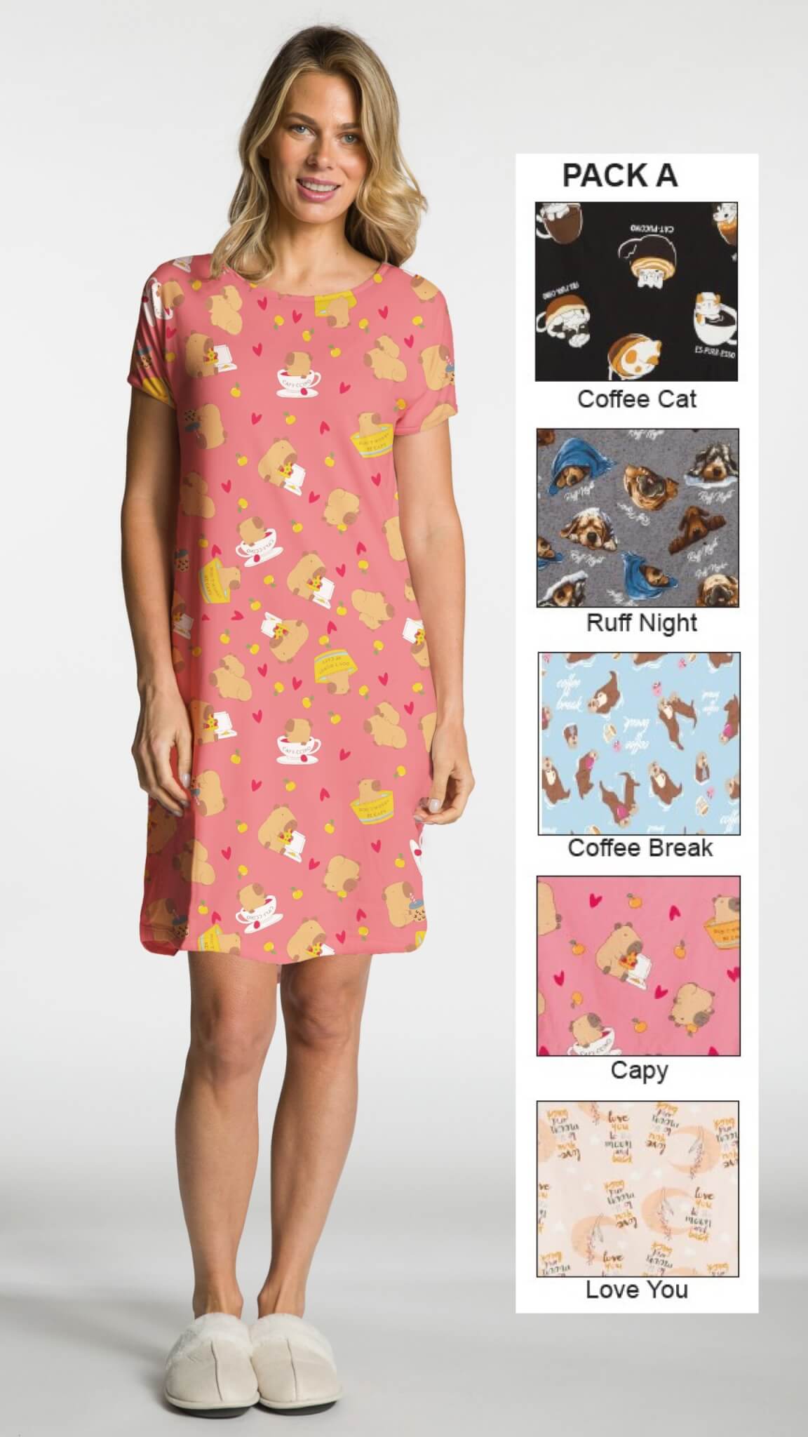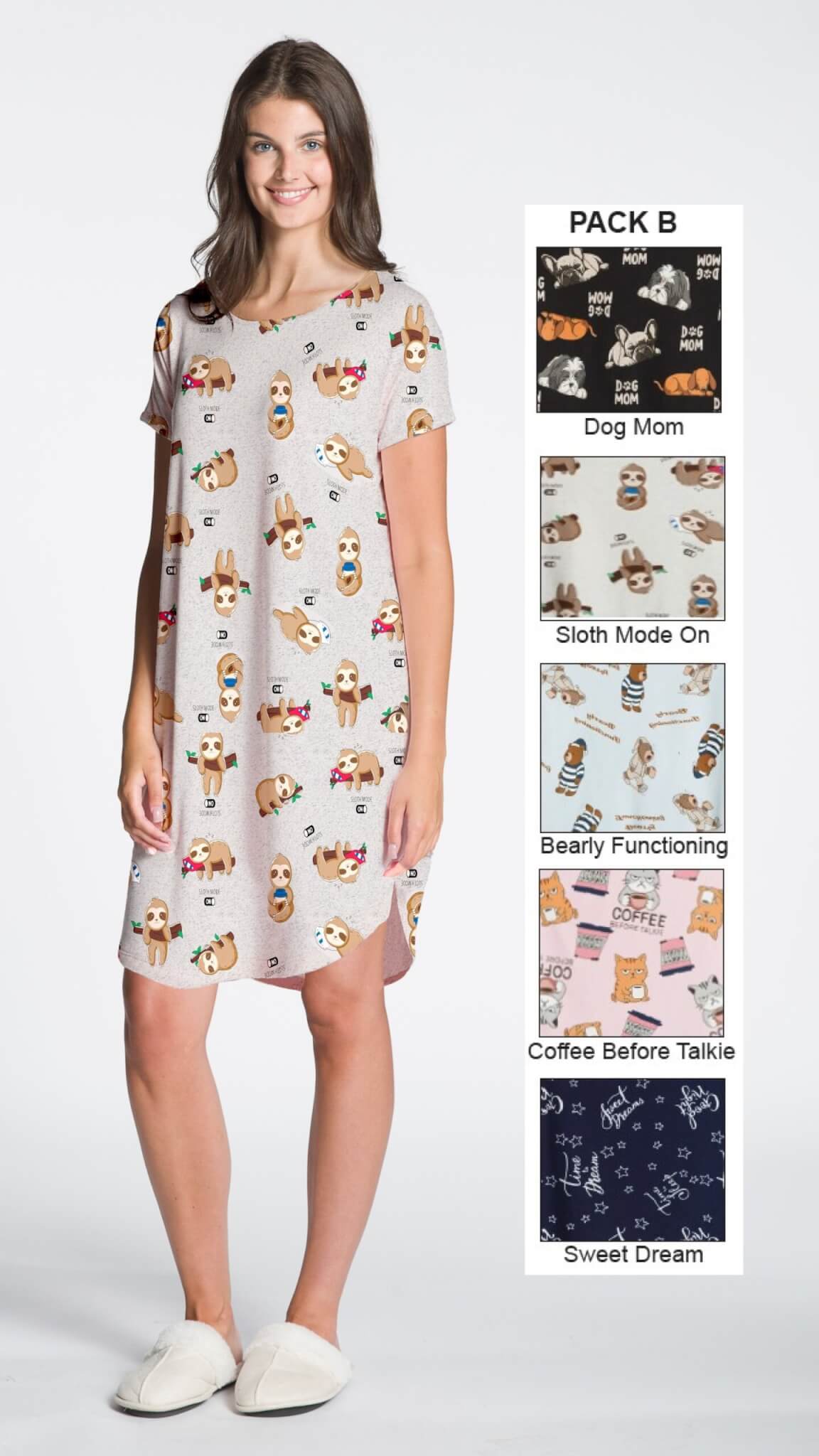Ladies Short Sleeve Printed Night Shirt