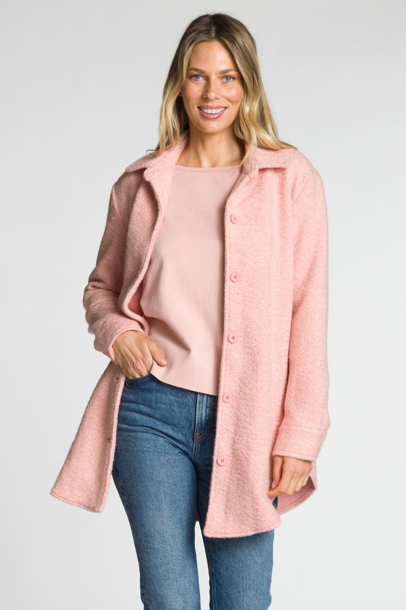 Long Sleeve Button Front Jacket with Side Seam Pockets