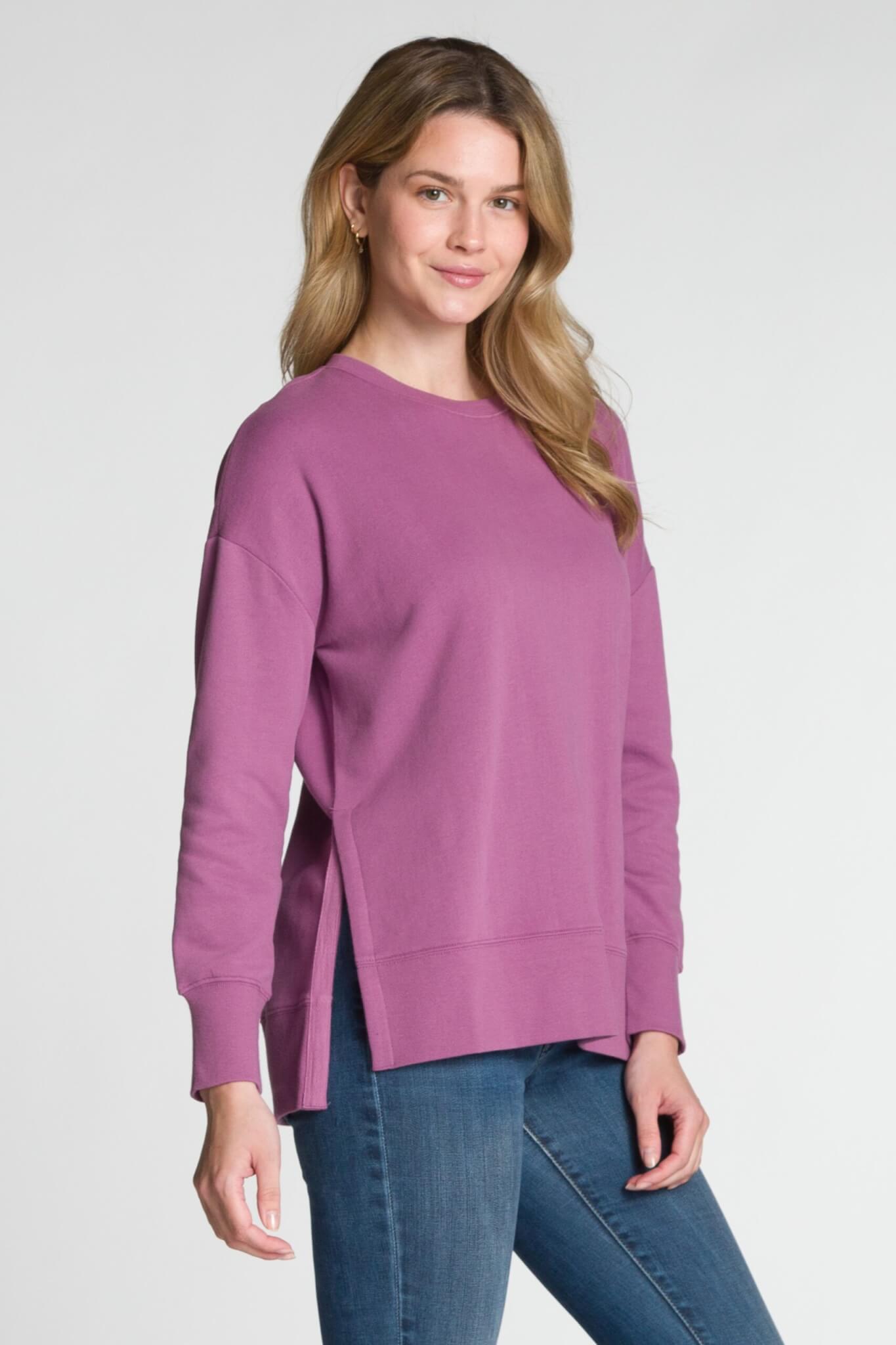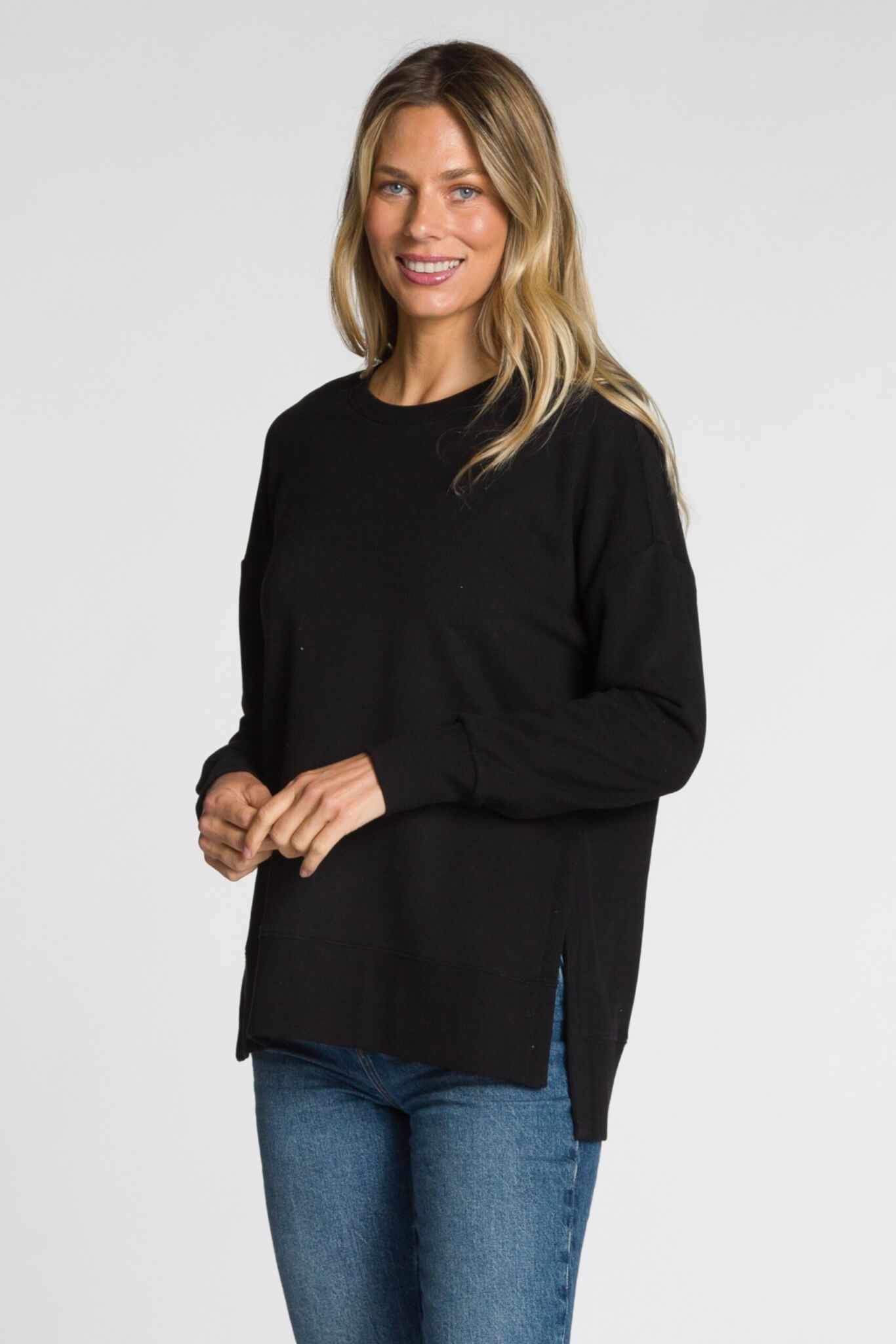 Long Sleeve Crew Neck Top with High-Low Hem and Side Slits
