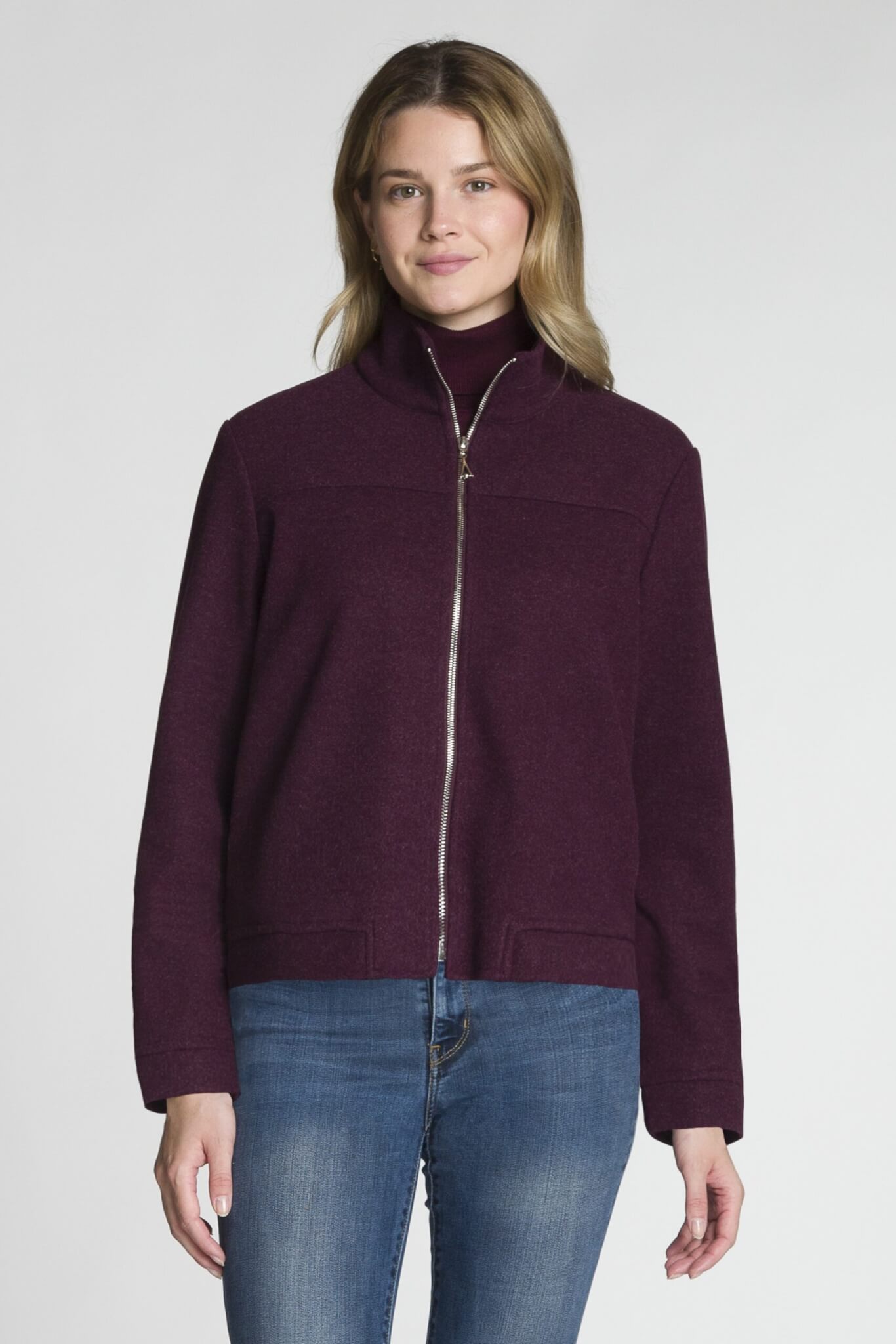 Long Sleeve Full Zip Stand Collar Jacket with Side Seam Pockets