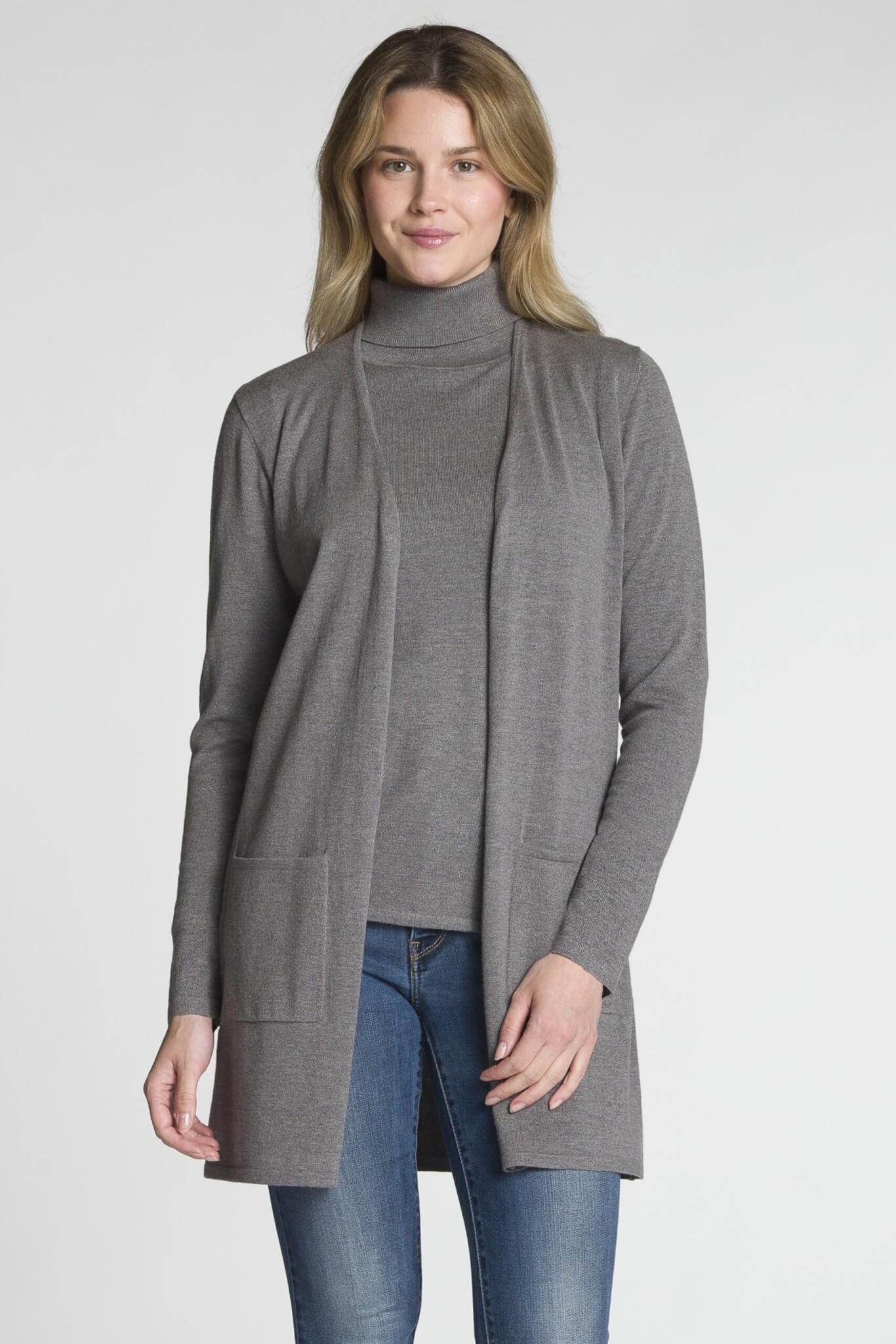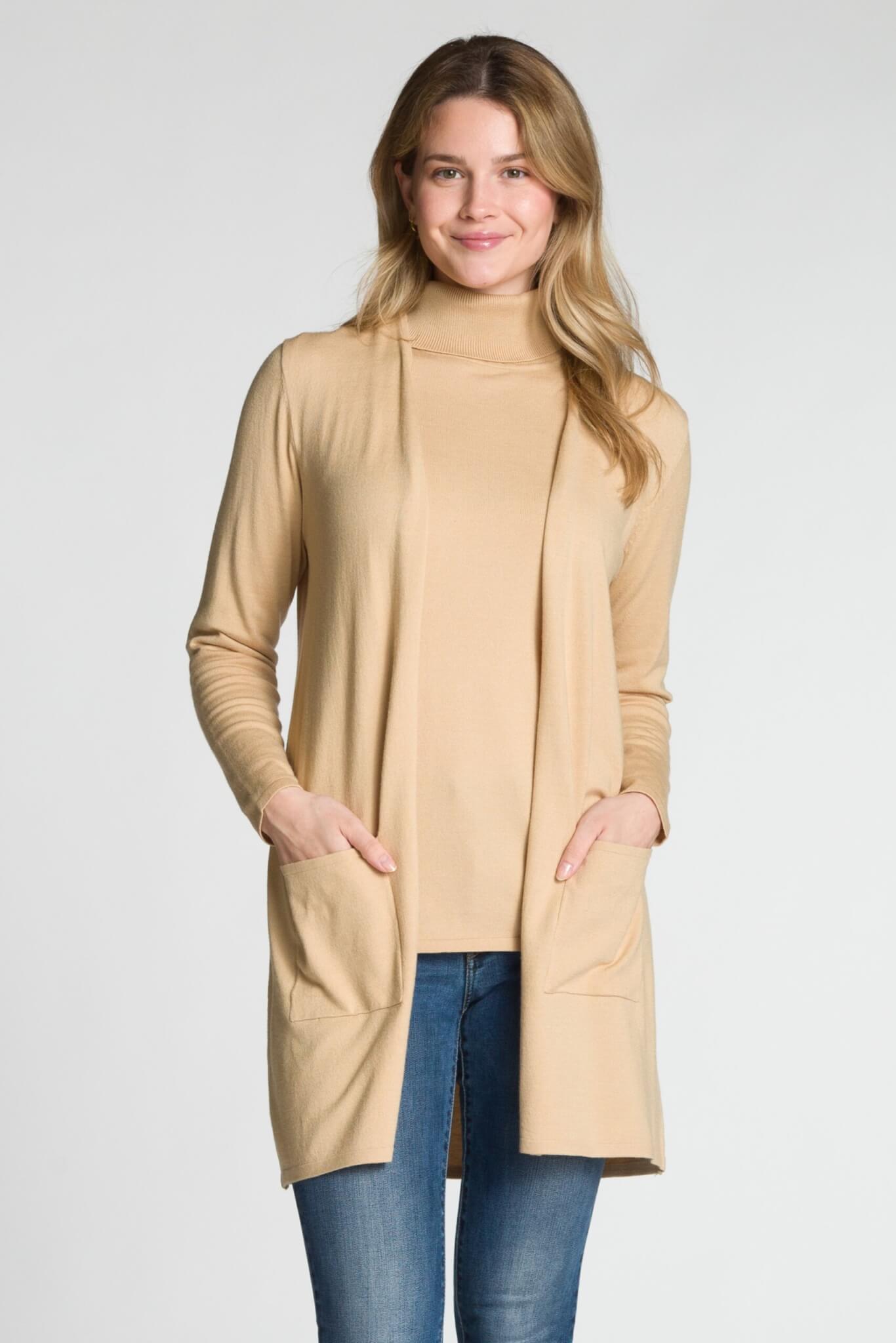 / Long Sleeve Open Cardigan with Patch Pockets