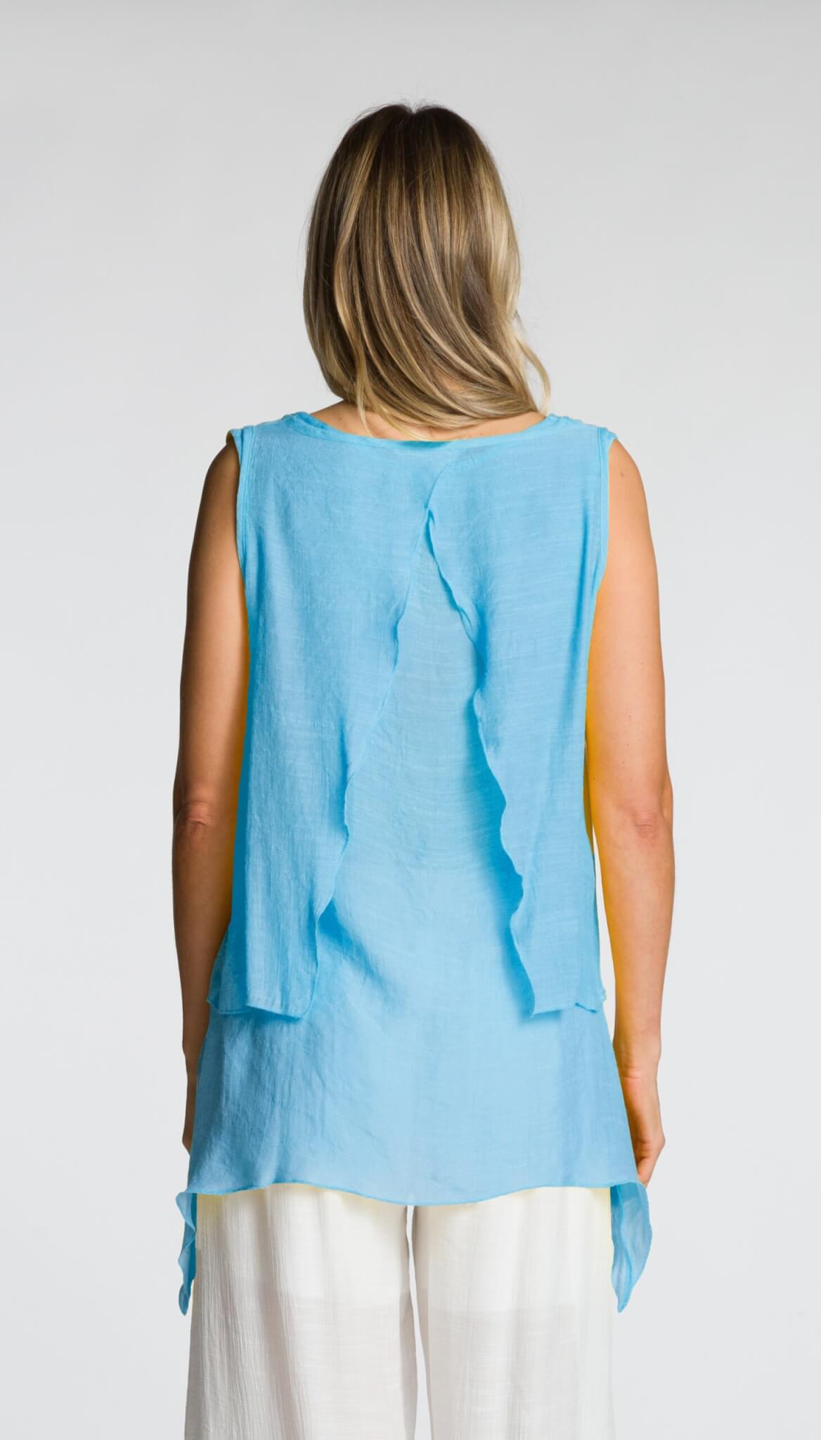 Sleeveless Round Neck Layered Tunic Top with Asymmetrical Hemline