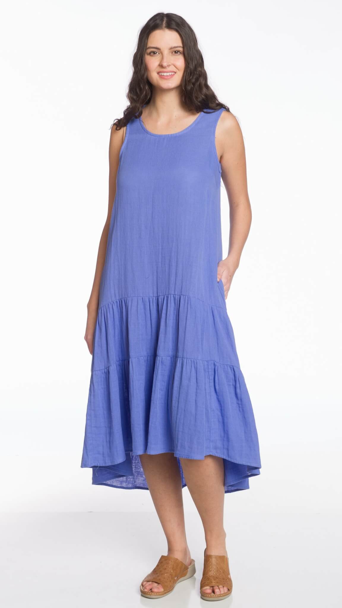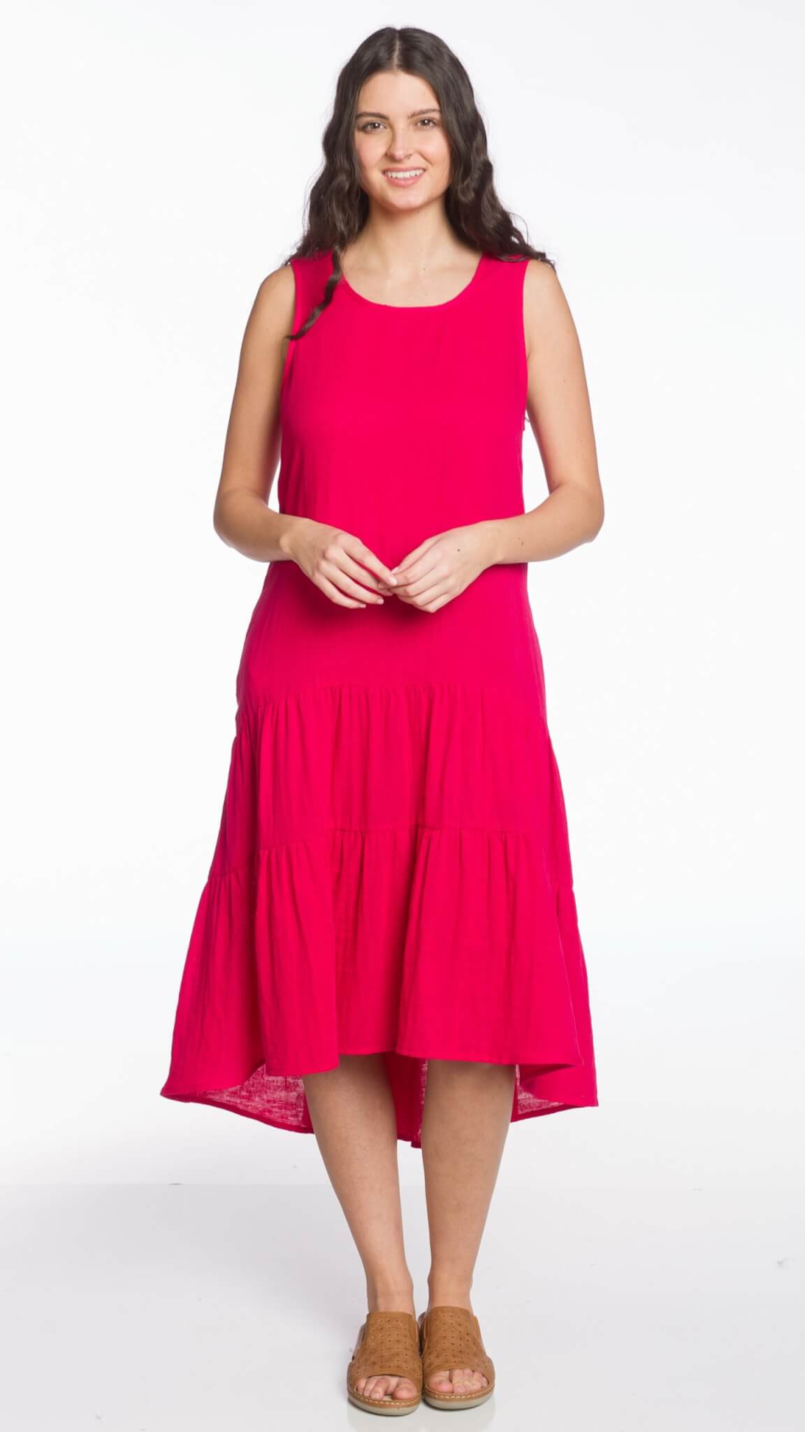 Sleeveless Midi Tiered High-Low Dress with Pockets